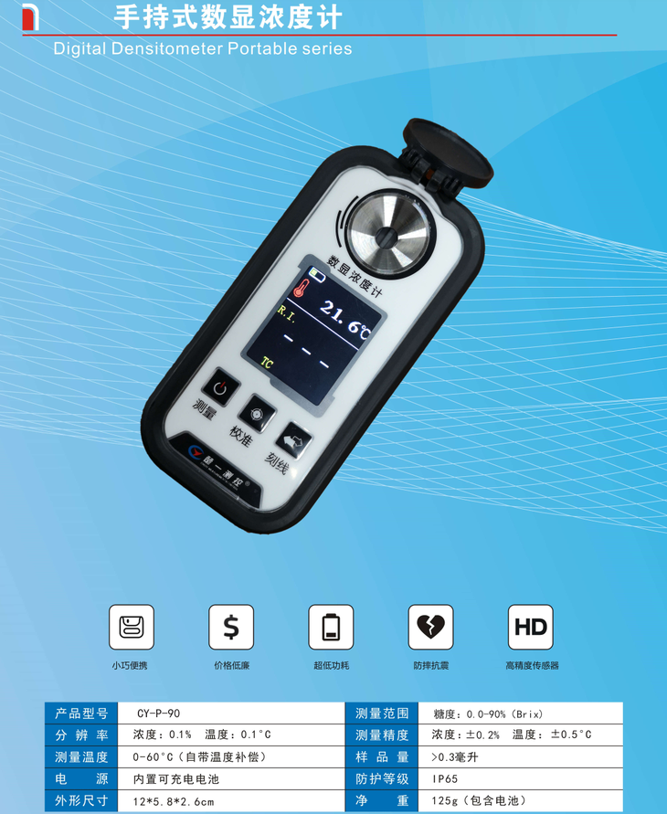 4、各類水溶液的濃度檢測(食品,醬料、啤酒、麥芽汁、飲料,果汁、制藥原液,化工溶液,漿料等等)。