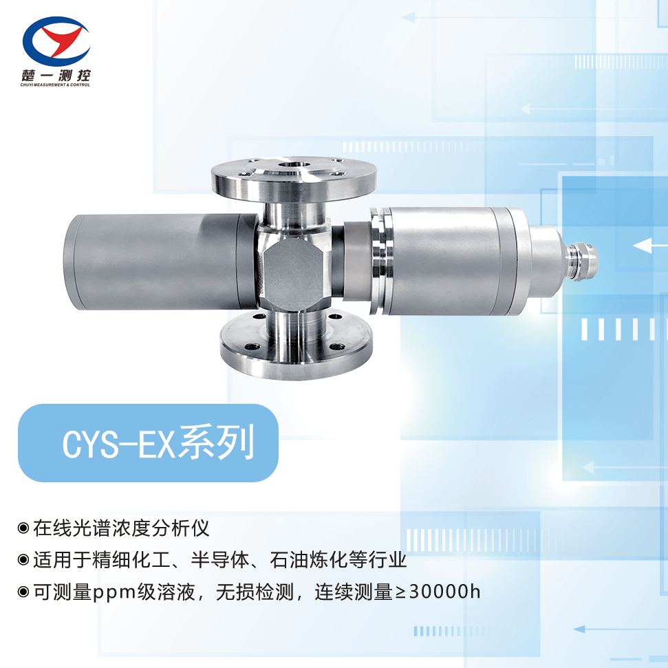 CYS-EX-CAT航空煤油微量水在線光譜儀適用于航空煤油、柴油中微量水含量的在線測量,采用分體式設計,主要由濃度傳感器和多功能主機組成,利用近紅外光的散射和吸收原理,通過傳感器測量,多功能主機顯示及控制。...